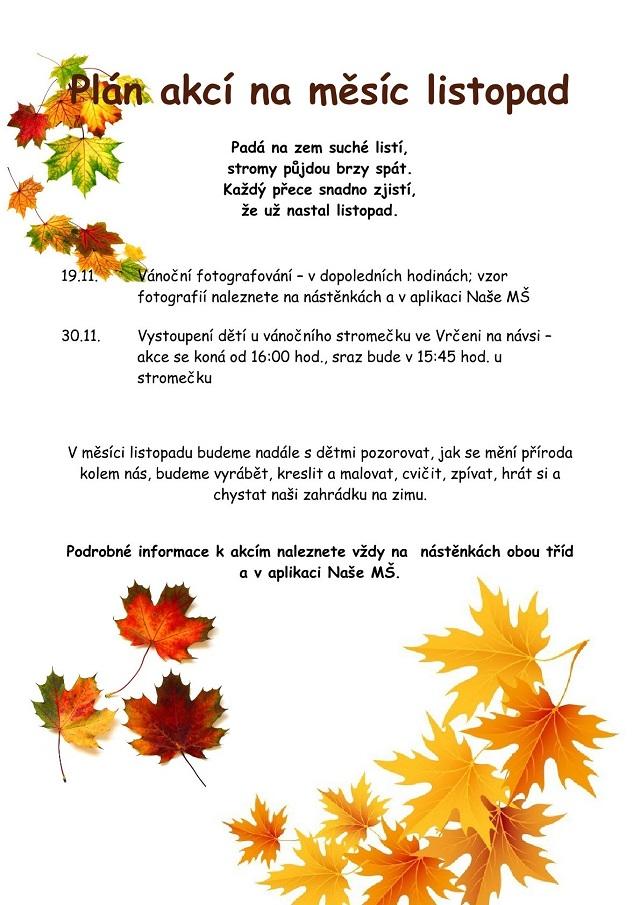 Plán akcí na měsíc listopad 2025