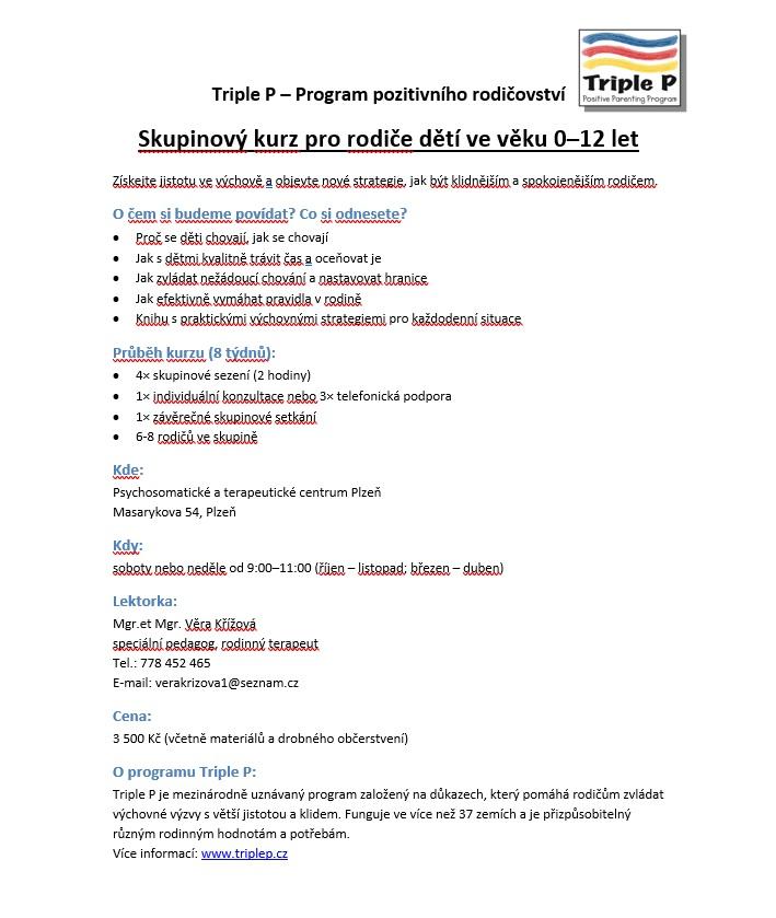 [pondělí, 18. srpen 2025]Vážení rodiče, po rozkliknutí nadpisu naleznete na přiloženém plakátku informace ke kurzu. O kurzu je možné najít více informací na www.triplep.cz .